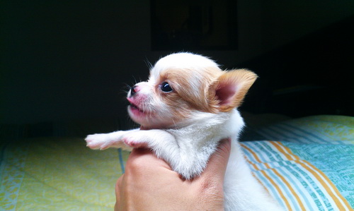 ชิวาวาขนยาว สีขาวมาร์คน้ำตาล มาร์คหน้ากาก ไซส์เล็ก
