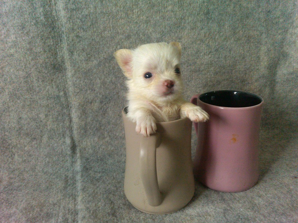 ลูกชิวาวาขนยาวสีขาวสำลีไซส์จิ๋วเพศผู้