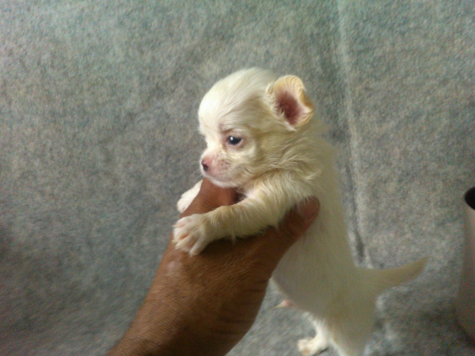 ลูกชิวาวาขนยาวสีขาวไซส์เล็กเพศผู้