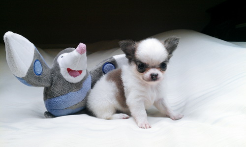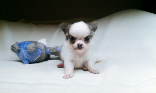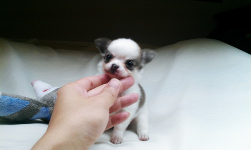 น้องน้ำเงิน ชิวาวาขนยาว สีขาวเทา สีหายาก เพศผู้ อายุ 43วัน