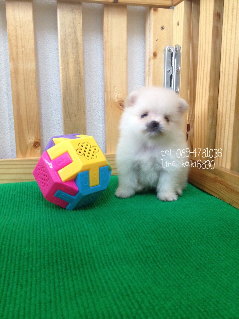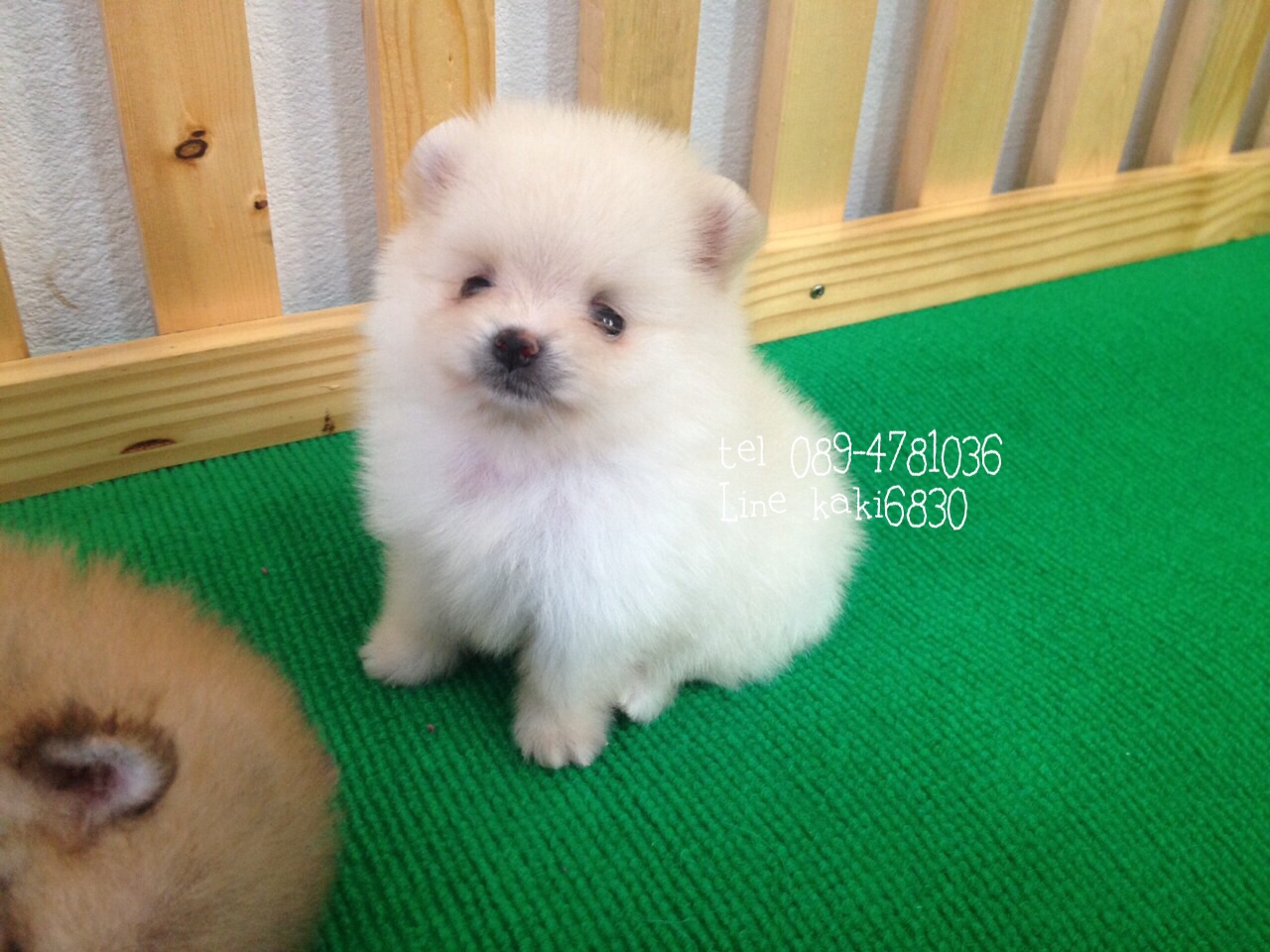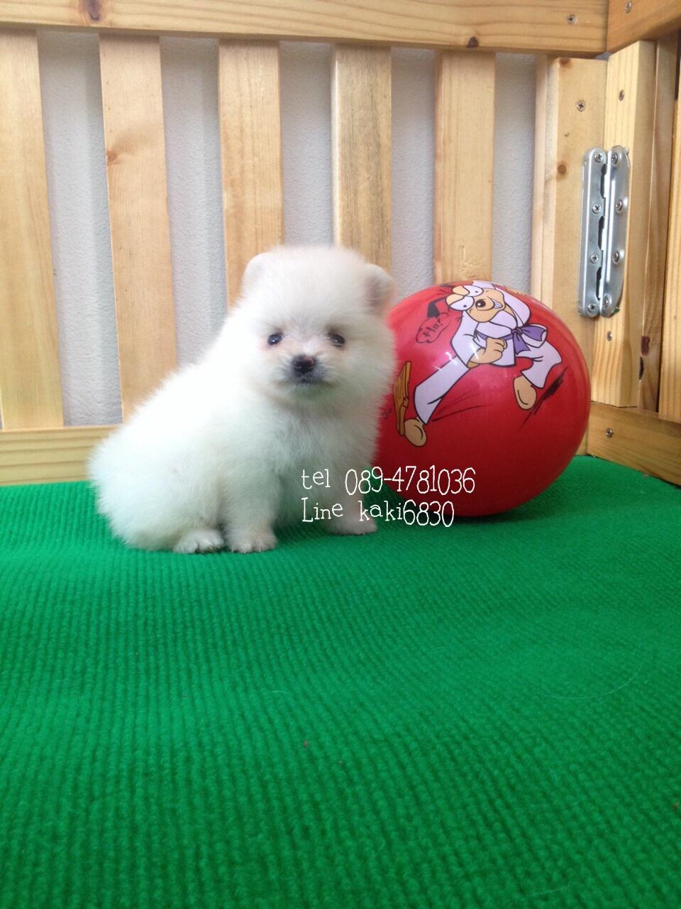 ปอมเมอเรเนียนหน้าหมีไซส์ทีคัพเพศหญิงสีขาวล้วน089-4781036