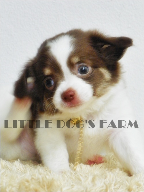-ชิวาวาเพศผู้ ขนยาวสีแฟนซี ขาว-ชอคโกแลต