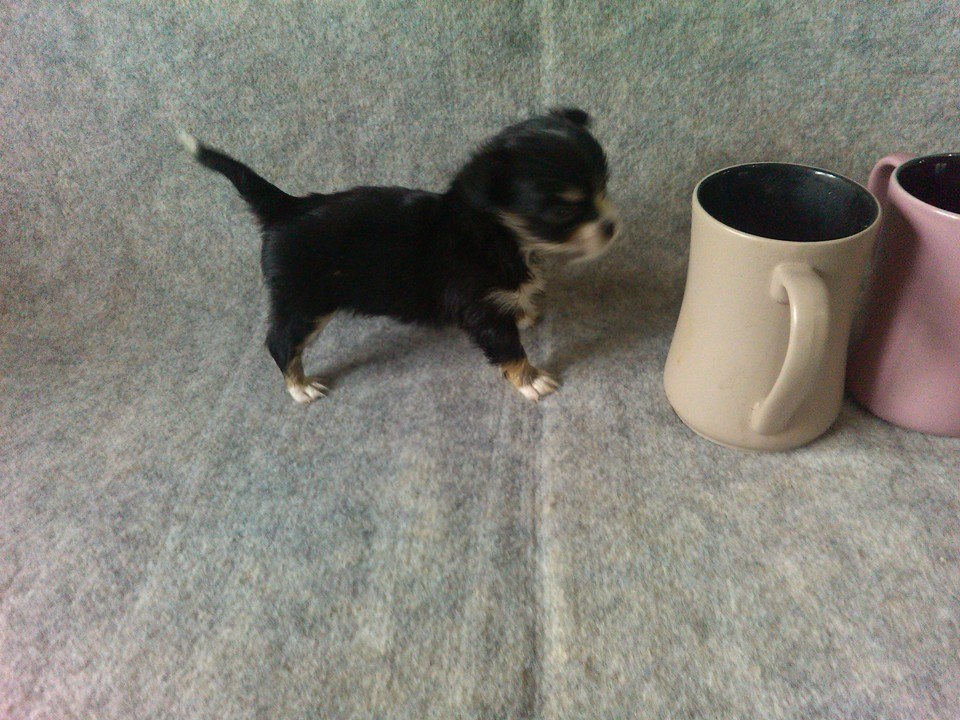 ลูกชิวาวาขนยาวอายุเดือนกว่าไซส์เล็กสีแฟนซีและสีขาวเพศผู้ตัวละ5500โทร0923158826