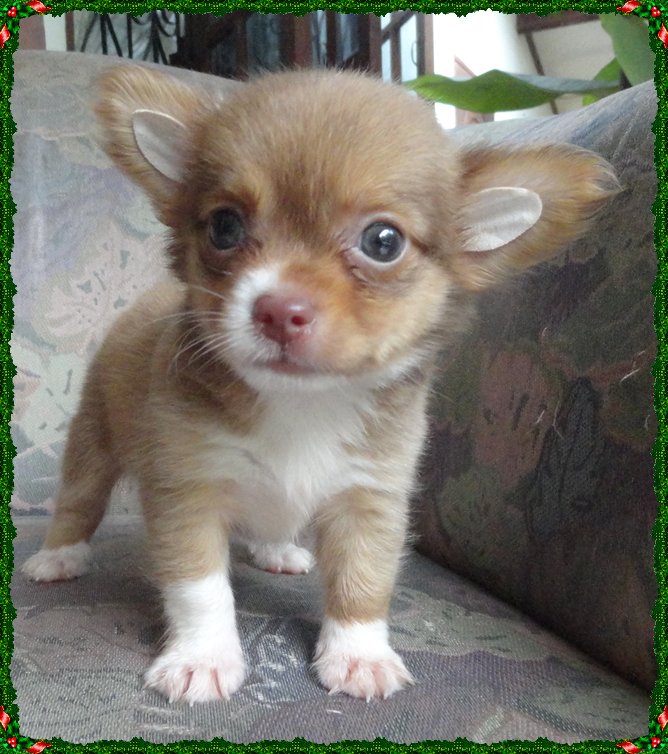 (น้องใด้เจ้านายใหม่ละจ้า) ลูกชิวาวาขนยาว ตัวผู้ สีช๊อกอ่อนอายุ 45 วัน