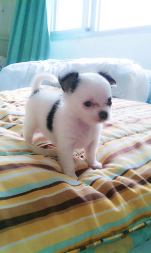 น้องชิโร่ ชิวาวาขนยาว สีขาวมาร์คดำ น่ารักขี้เล่นมาก