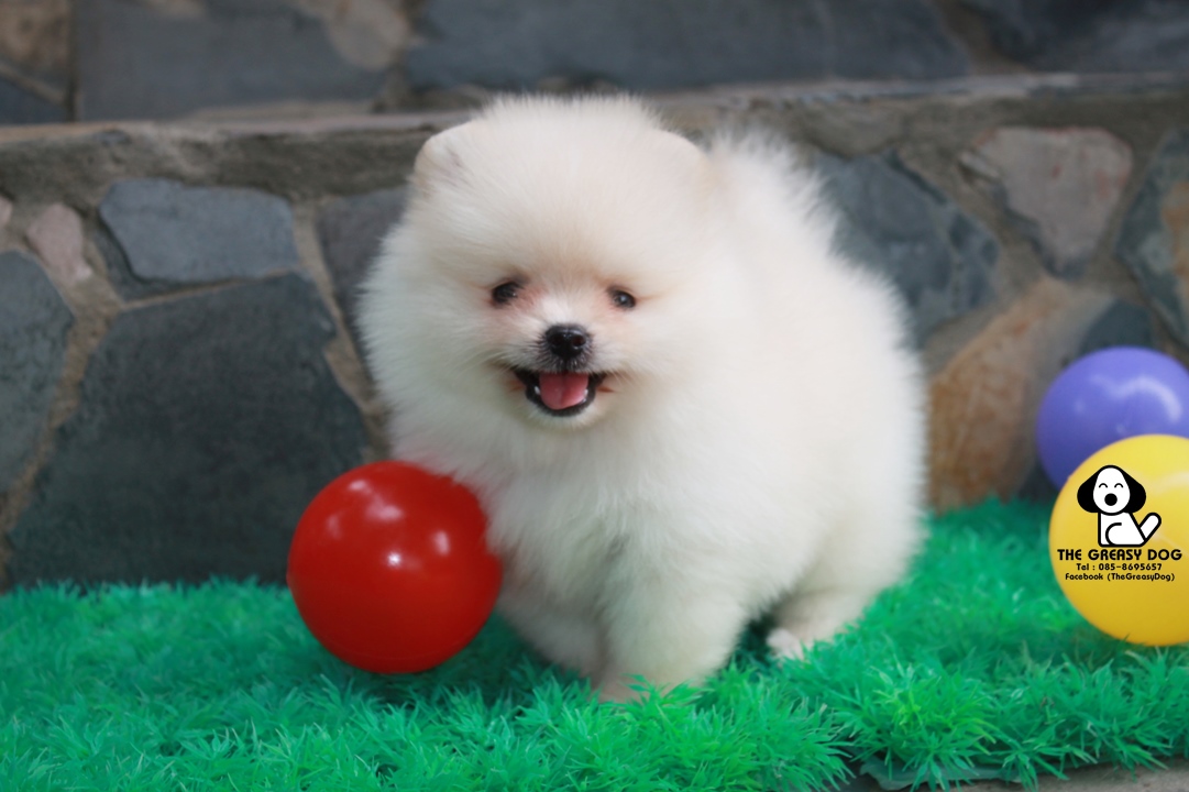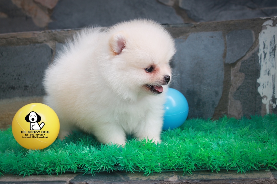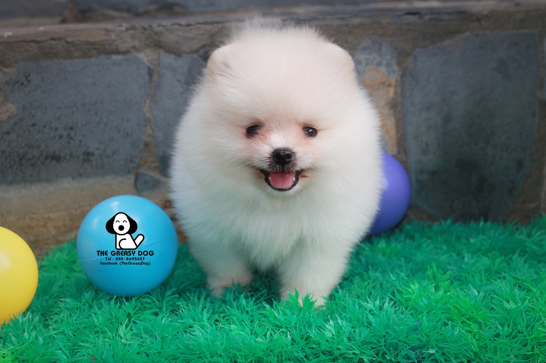 [ขายปอมเมอเรเนียน]THE GREASY DOG 157 ปอมเมอเรเนียน ปอมเมอเรเนียน เพศผู้ สีขาวครีม เกรดประกวด ขาใหญ่
