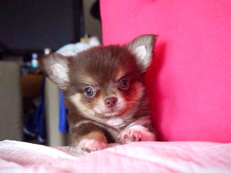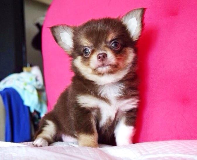 ชิวาวา สีช็อคแทน Tri-color ลำตัวสีช็อคโกแลต คิ้วสีครีม