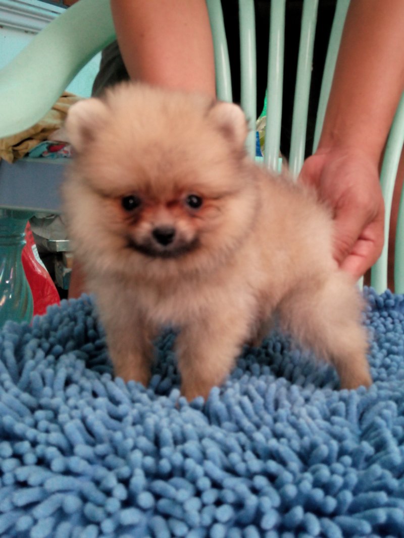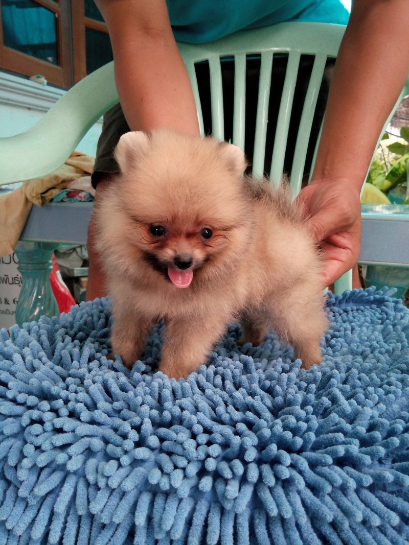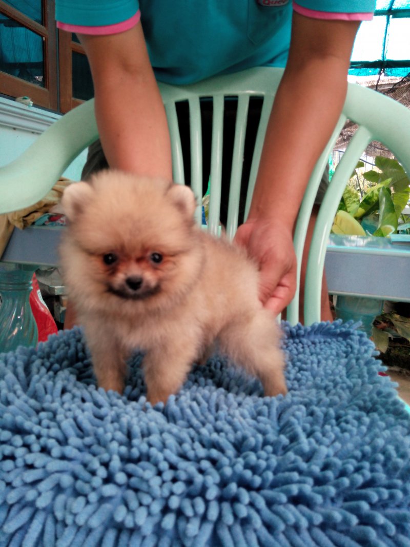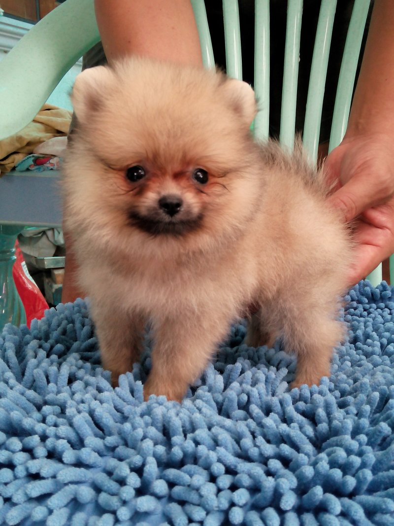 ลูกสุนัขปอมๆ อายุ50 วัน ไซด์เล็ก ขนแน่น สีส้ม มีใบเพ็ด