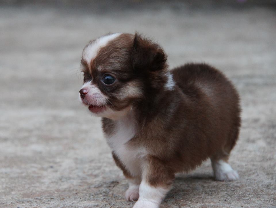 Cartoon Dog's House : ชิวาวาเพศเมีย ขนยาวสีแฟนซีขาวน้ำตาล