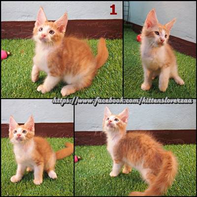 น้องแมวเมนคูน CFA เกิดวันที่ 26/04/2014 มี 3 ตัวสีส้มขาวๆ ขาวๆส้มๆ ส้มๆข๊าววขาวว (เอ๊ะจะบอกทำไม 5555) คอกนี้ตัวผู้ล้วนจร้าาา