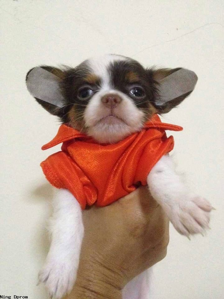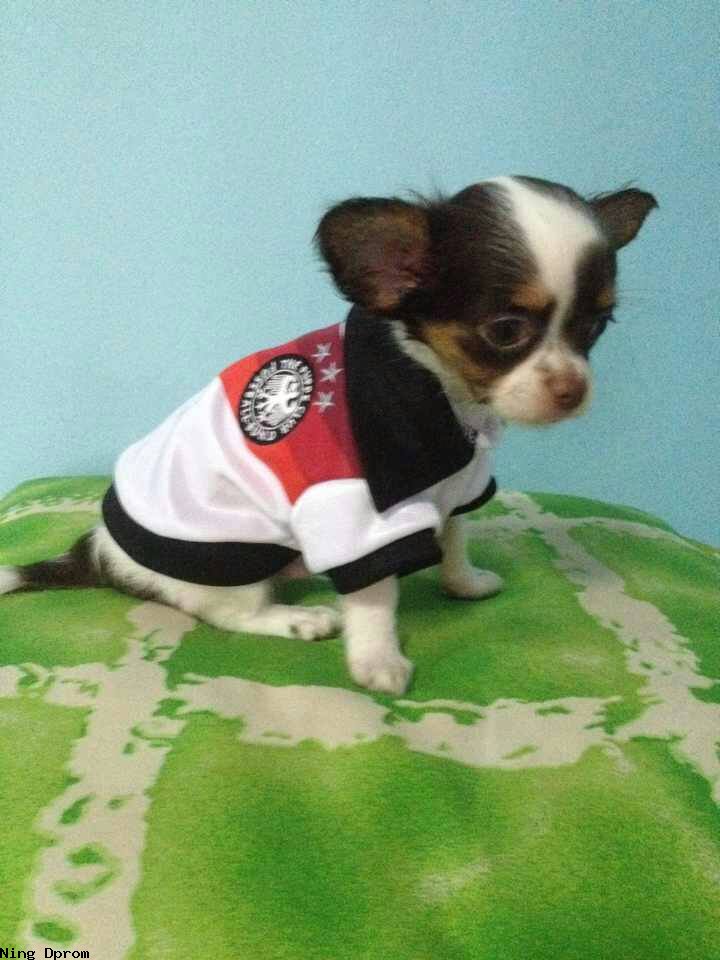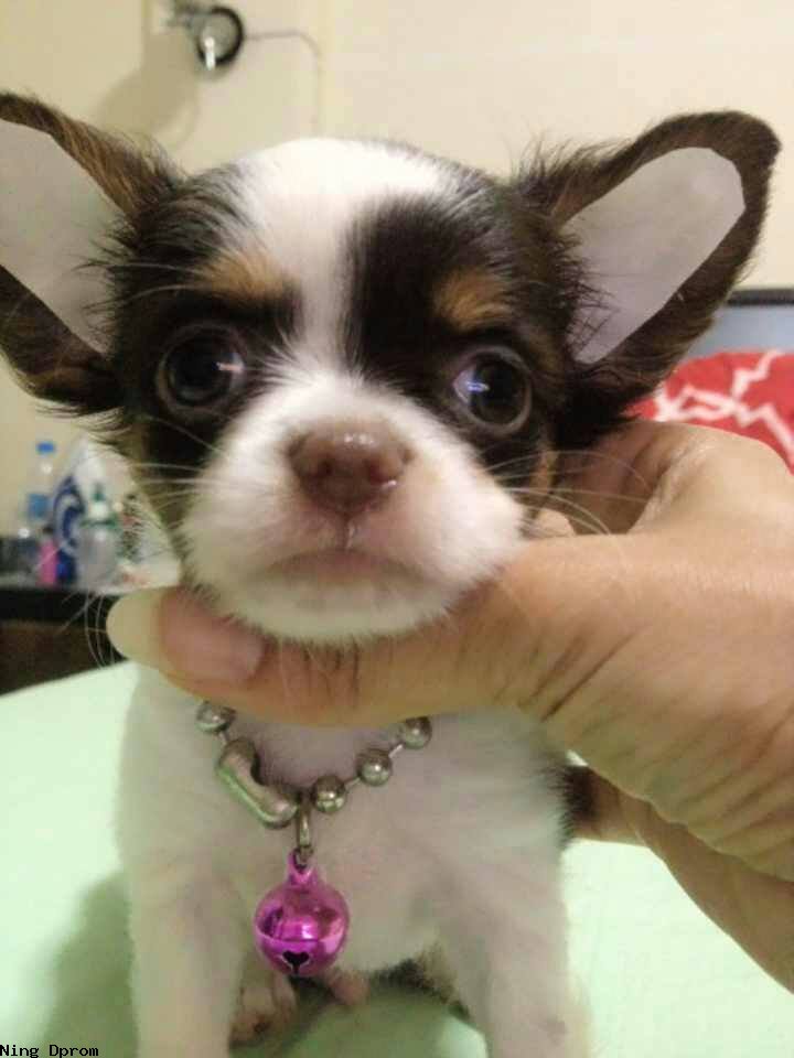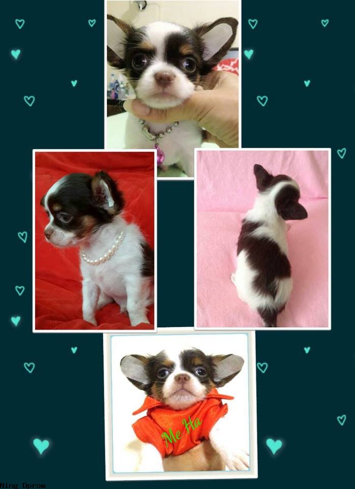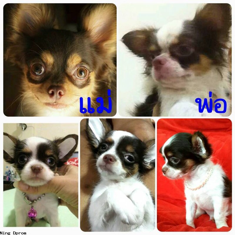 ชิวาว่าขนยาว เพศชาย สีขาว ช๊อค สายช๊อค 100% หน้าสั้น