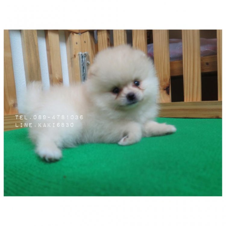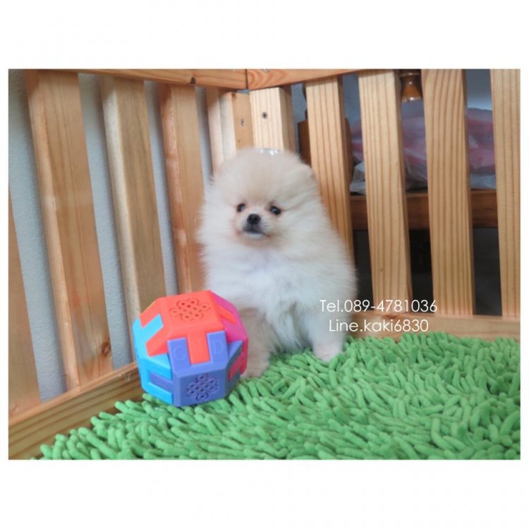 ปอมเมอเรเนียนหน้าหมีไซส์เล้กจิ๋ว สีครีมล้วน 089-4781036