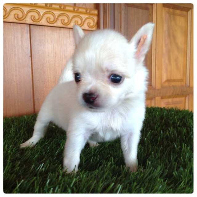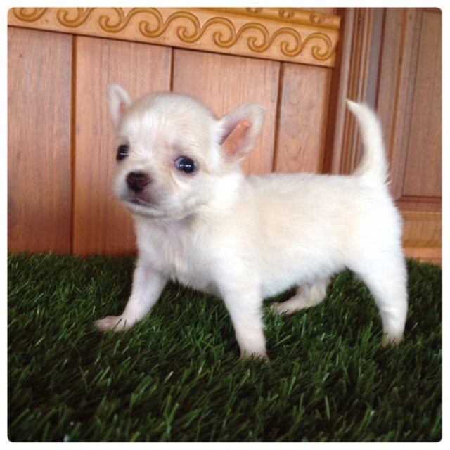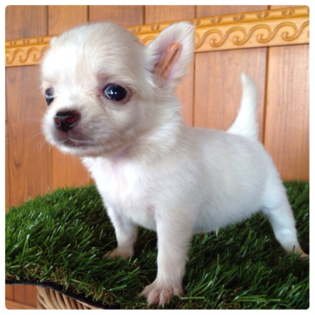ขายลูกสุนัขพันธ์ุชิวาวา ขนยาว เพศผู้ สีขาวครีม อายุ50วัน วัคซีนแล้ว ถ่ายพยาธิแล้ว (บริการส่งทั่วประเ