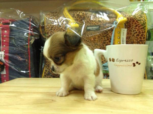 ขายลูกสุนัขชื่อ N’ ฟรุตตี้ สายพันธุ์ชิวาวาขนยาว (สายญึ่ปุ่น) อายุ 45 วัน เพศเมีย ขนาดทีคัพ สีขาว-น้ำตาล ราคา 16,000 พิเศษเหลือเพียง 10,000 บาท สนใจติดต่อคุณติ๋มได้ที่ร้านLovelydog Petshop จตุจักร พลาซ่า โซนดี ซอย 9 โทร. 081-8038305, 086-3274293 หรือhttp://www.lovelydogpetshop.com