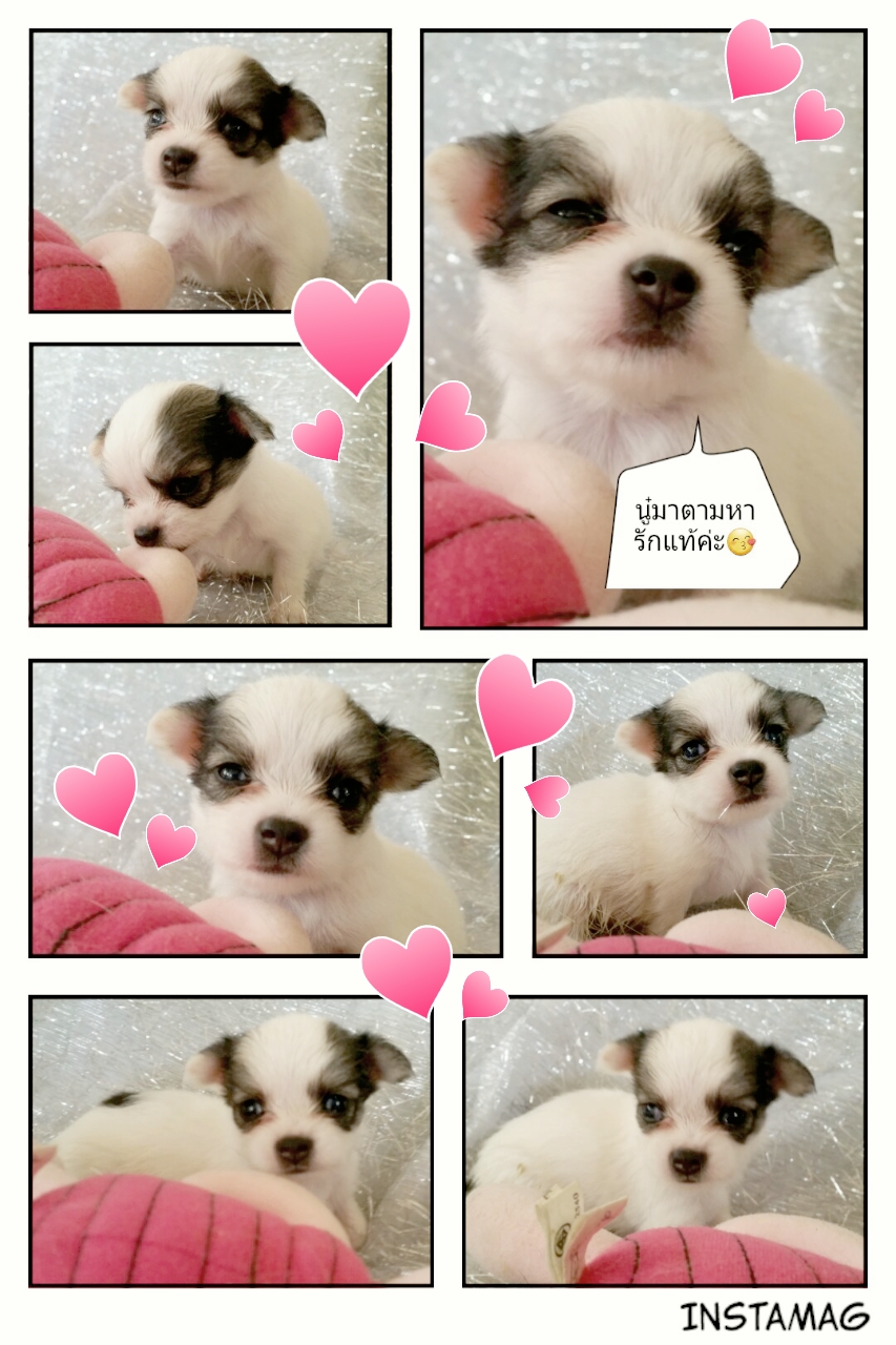 น้องชิวาวาขนยาวเพศเมีย สีขาวน้ำตาล มาร์คแพนด้า น่ารักฝุดๆ