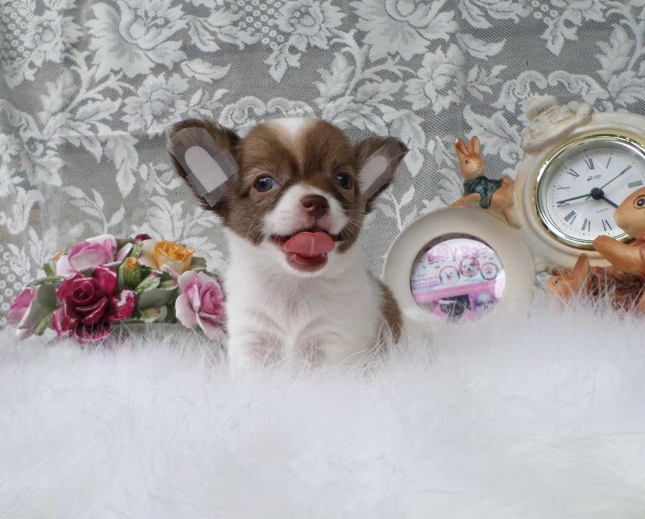 ดช เมสซี่ ชิวาวาขนยาว ไซส์เล็ก สีแฟนซีขาว-น้ำตาลอมช็อค จมูกสีตับ สายช็อค ราคา7,000บาท มีใบเพ็ดเกิด12มิถุนายน วัคซีน1เข็มเรียบร้อย