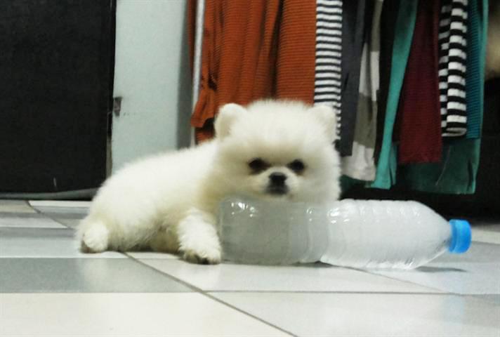ปอมเมอเรเนียน เพศผู้ อายุ 55 วัน วัคซีนและถ่ายพยาธิแล้ว ไซด์เล็ก ขนแน่น สีขาว ขอดูรูปได้ ID Line : jackiejoe