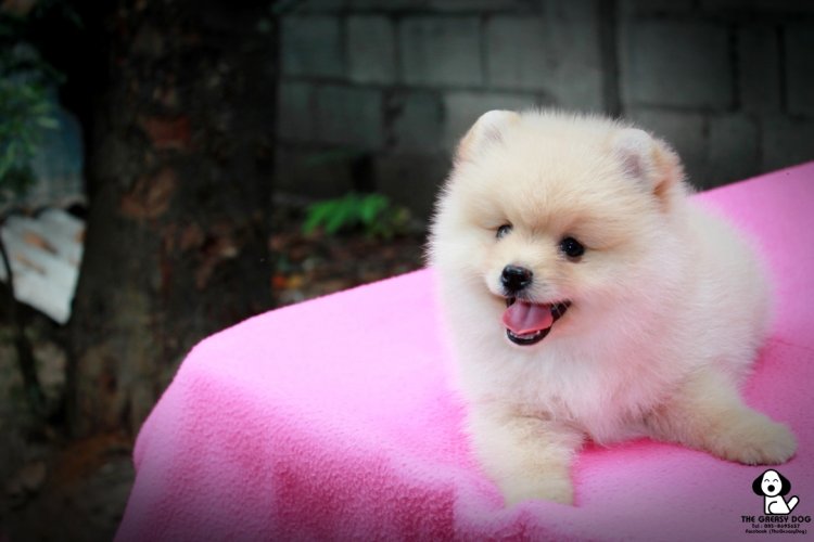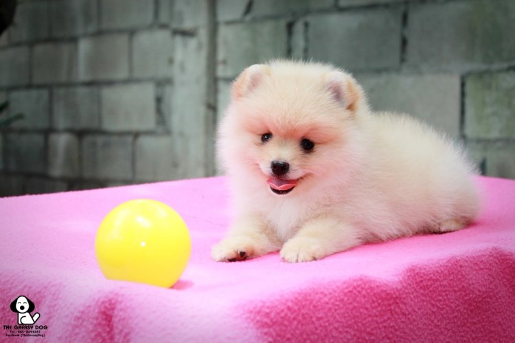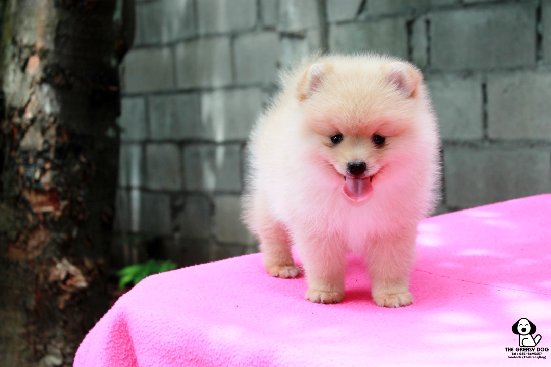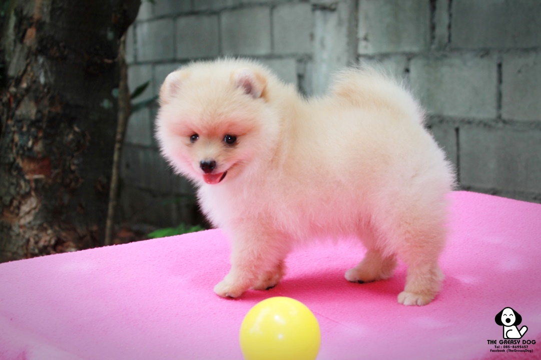 THE GREASY DOG ปอมเมอเรเนียน เพสผู้ สีครีม สายเลือดดี ขนแน่น หน้าหมี