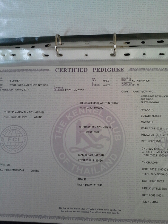 ขายลูกเวสตี้ เพศผู้ พ่อเป็นไทยแลนด์แชมป์ แม่เป็นหลานมัลติแชมป์(แชมป์สี่ประเทศ) เพ็ดดีกรีเต็มใบ สายสวย โครงสร้างสวย กระโหลกใหญ่ ตัวสั้นกระชับ หน้าสั้น หางสั้น โคนหางใหญ่ ขนหยาบหนา