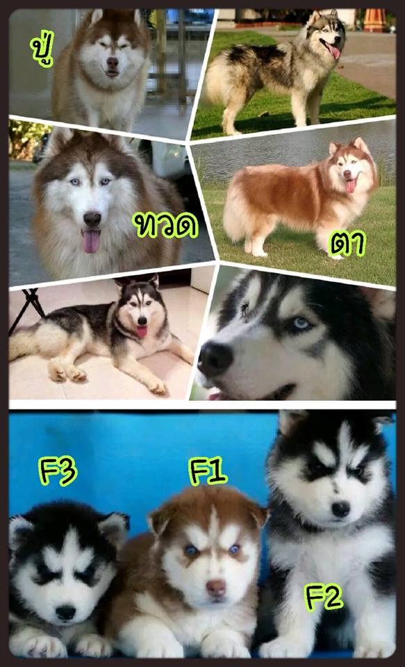 พ่อสุนัขเป็นลูกจากัวร์(ตอนนี้อยู่กับสุรินทร์ฮัสกี้)สายkiseki แม่เป็นลูกโอเว่น