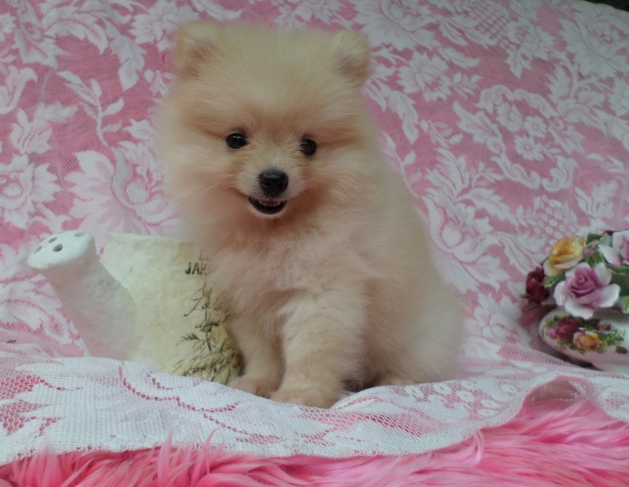 ดญ.มาร์กี้ พันธุ์ปอมเมอเรเนียน สีครีม ขนาดไซส์เล็ก โตเต็มที่ไม่น่าเกินประมาณ3โลคะ นิสัย แสนรู้ ซนนิดๆ น่ารักๆ