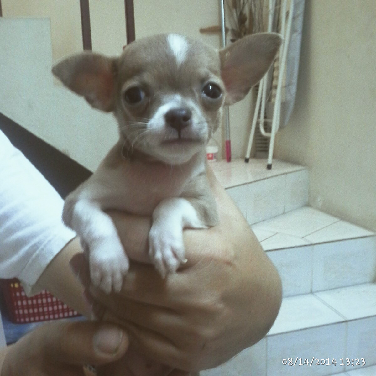 ชิวาว่าสายญี่ปุ่น อายุเดือนครึ่ง สีเทาขาวแซมน้ำตาลอ่อน เกิด 30มิ.ย57 วัคซีนเข็มแรกแล้ว ขาย55oo เป็นสุนัขบ้านเลี้ยงเอง ไม่ใช่ฟาร์ม สุขภาพแข็งแรงสุดๆ ทานอาหารเม็ดได้แล้ว ขอคนที่รักและพร้อมที่จะเลี้ยงดูเค้าจริงๆ คิดราคาพิเศษให้ค่ะ 081-572-1150 (สระบุรี)