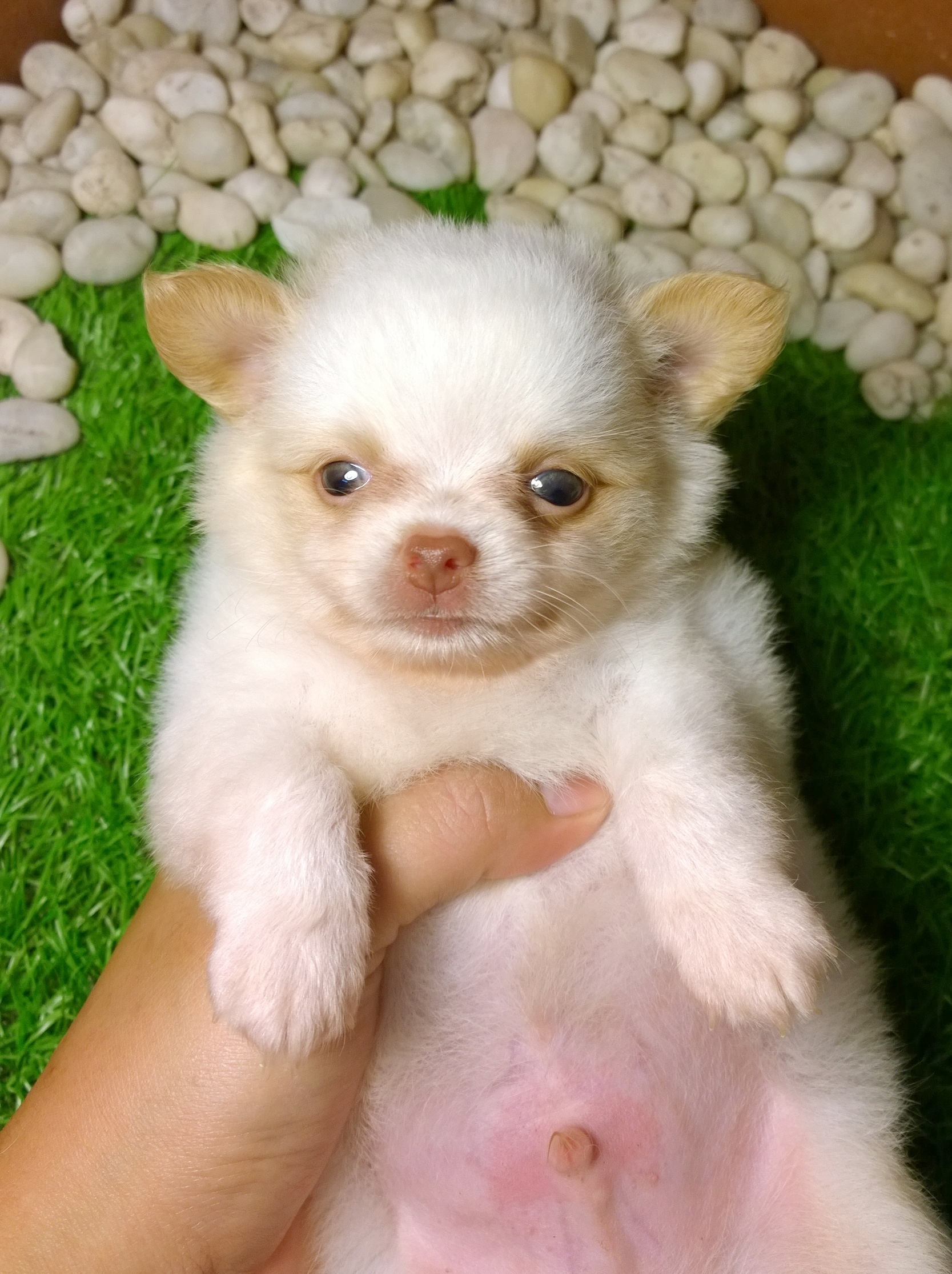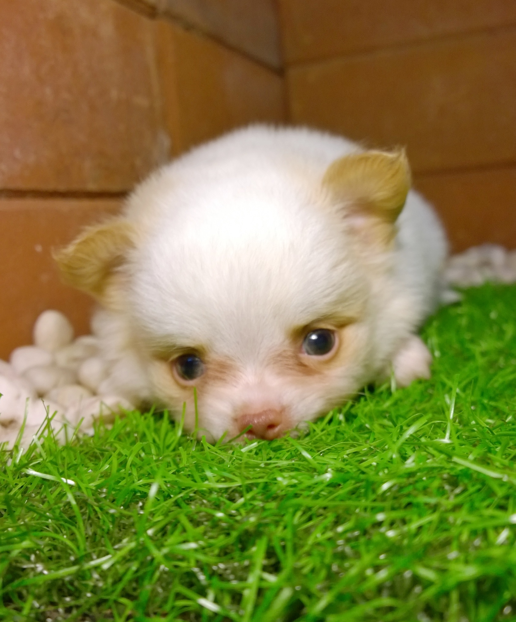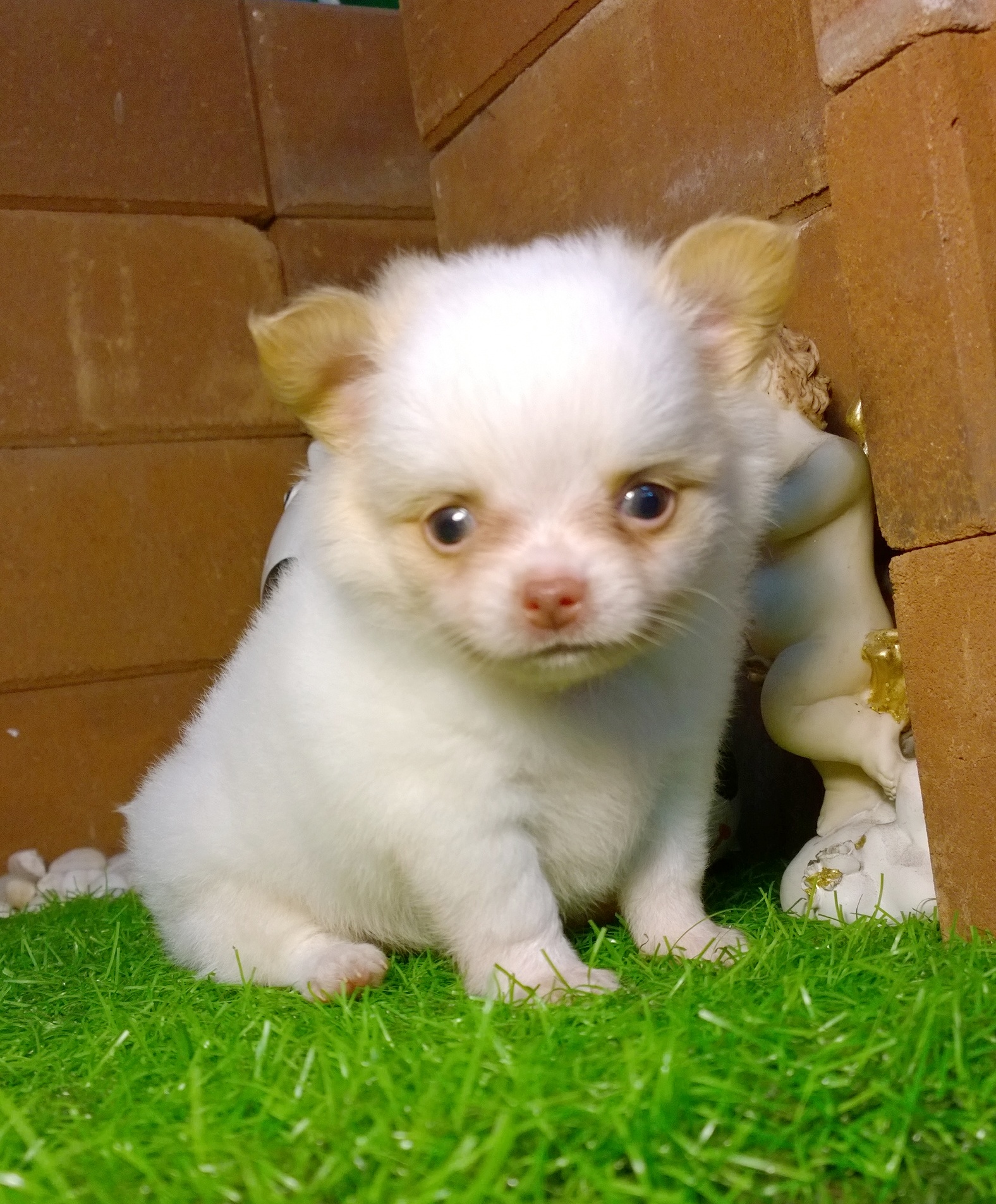 พ่อเป็นชิวาวาขนยาว แม่เป็นปอมสีขาว