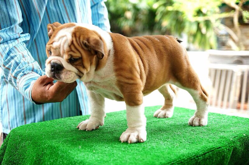 bulldog สายพันธ์ อังกฤษ ที่มี underjaw ที่กว้างและทำมุมปิดปากอย่างสนิท