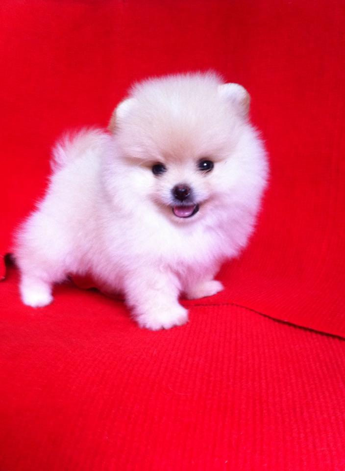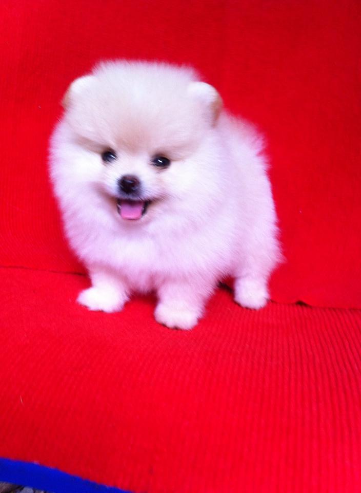 ขายลูกปอมหน้าหมีตัวผู้สีขาวครืม 1 ตัวครับ ลูกหมาที่บ้านเลิ้ยงเองครับ