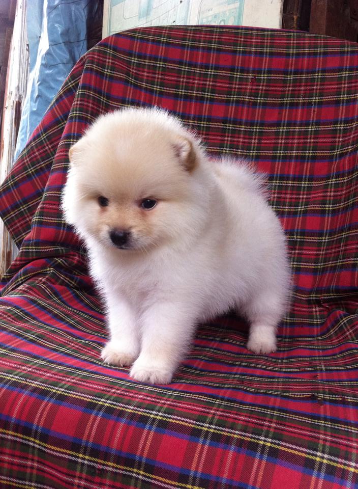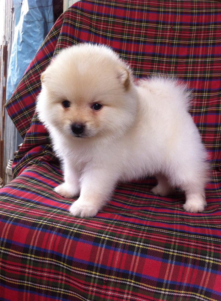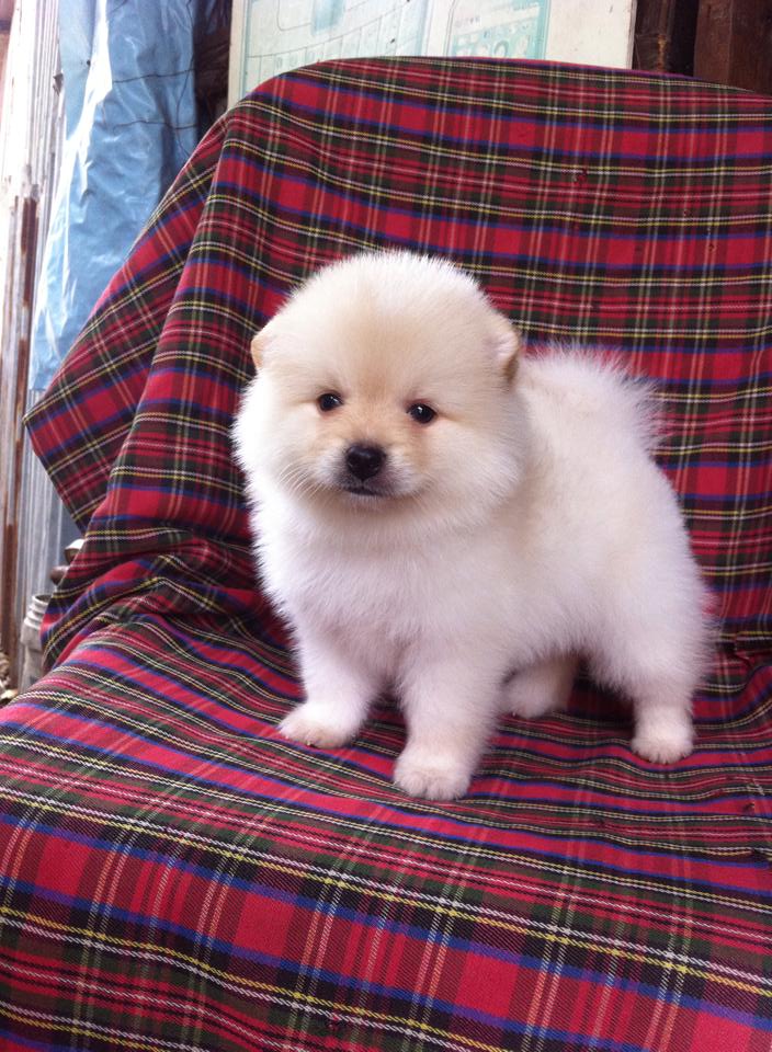ขายลูกปอมหน้าหมีตัวผู้สีขาวครืม 1 ตัวครับลูกหมาที่บ้านเลิ้ยงเองครับ