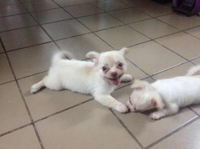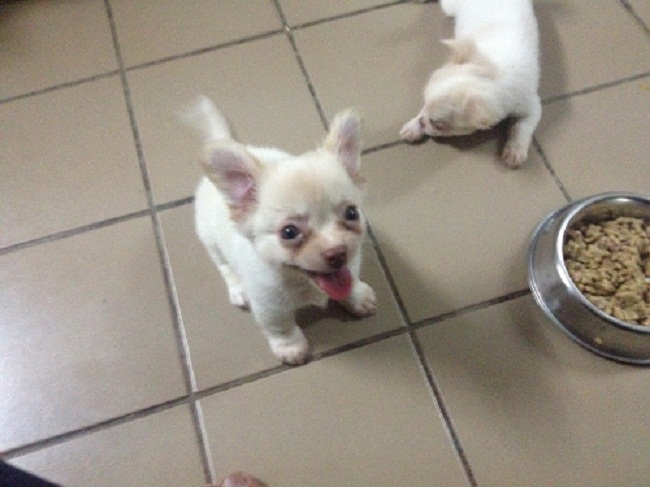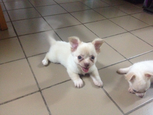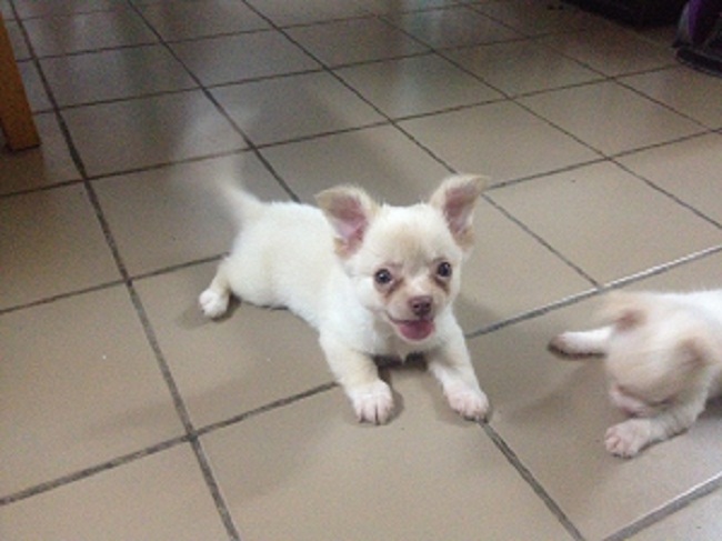 ขายชิวาวา ตัวผู้ สีขาวครีมๆ ตอนนี้ อายุ 56 วัน หมาบ้านๆ เลี้ยงเอง ไม่มีใบเพ็ด ราคา 5,000 บาท