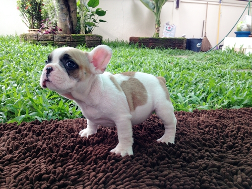 น้อง"บอสบราวน์" เฟรนซ์ บูลด๊อก สีขาวน้ำตาลดำ เพศผู้ สายพันธุ์แท้ ใบเพ็ดดิกรีเต็มใบ
