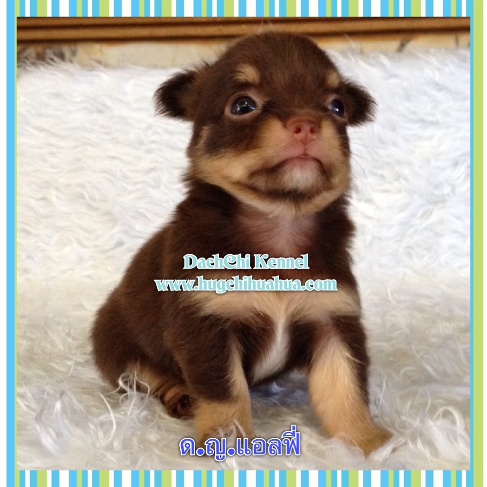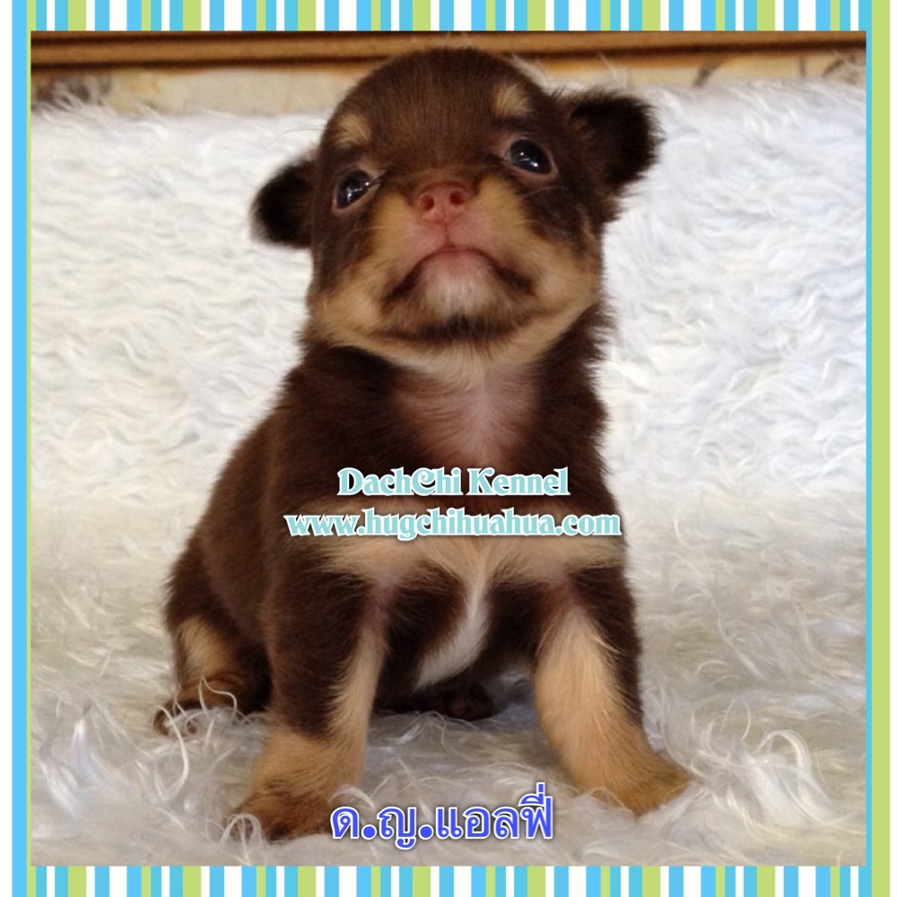 จองแล้ว ด.ญ.แอลฟี่ ชิวาวาขนยาว แม่สีช็อคแทน พ่อสีบลูไลแลค