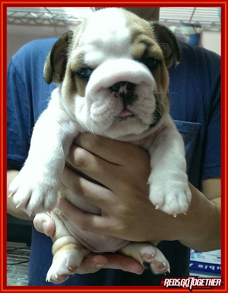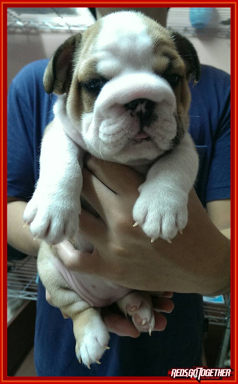 ลูกสุนัขเป็นลูกของ กันดั้ม พ่อพันธุ์จากฟาร์ม THEBESTBULLDOGS พ่อพันธุ์รูปสุดท้ายค่ะ