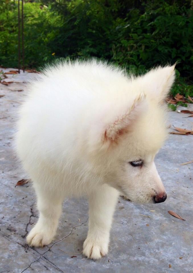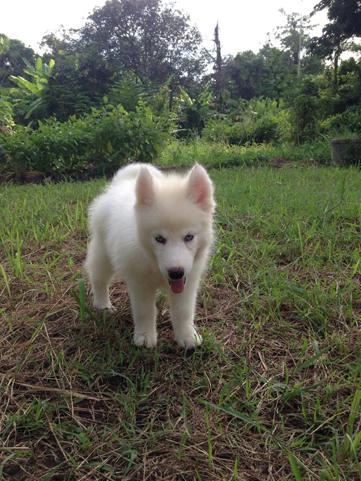 น้องหมาไซบีเรียน ขนวูลลี่ เพศเมีย สีขาวล้วน ตาฟ้าคู่ น่าตาน่ารักมาก โครงสร้างใหญ่ ขนหนา ราคาไม่แพงค่