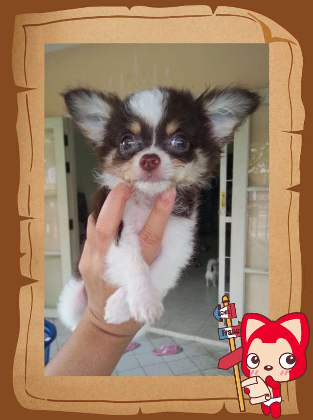 ชิวาวาขนยาว สีช็อค คิ้วเข้มไซด์เล็ก มี20นิ้ว นำโชค เพศผู้ อายุ2เดือนครึ่ง วัคซีนรวม1เข็ม ร่าเริง ขี้เล่น แสนรู้.แข็งแรง สนใจโทร.088~2004800 ตลอด24ชม.ID.ging5337