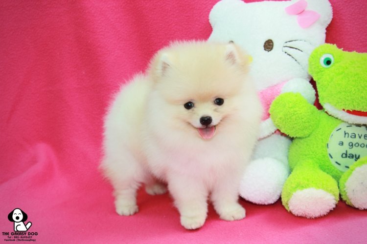 แบ่งขายปอมเมอเรเนียน สายพันธุ์แท้ 100% เพศผู้ สีขาวครีม ทรงสวย หน้าหมี ยิ้มสวย ขาใหญ่ ขนแน่นๆ เกรดโชว์ ราคาไม่แรง 1x,xxx฿ (รวมส่งฟรี)