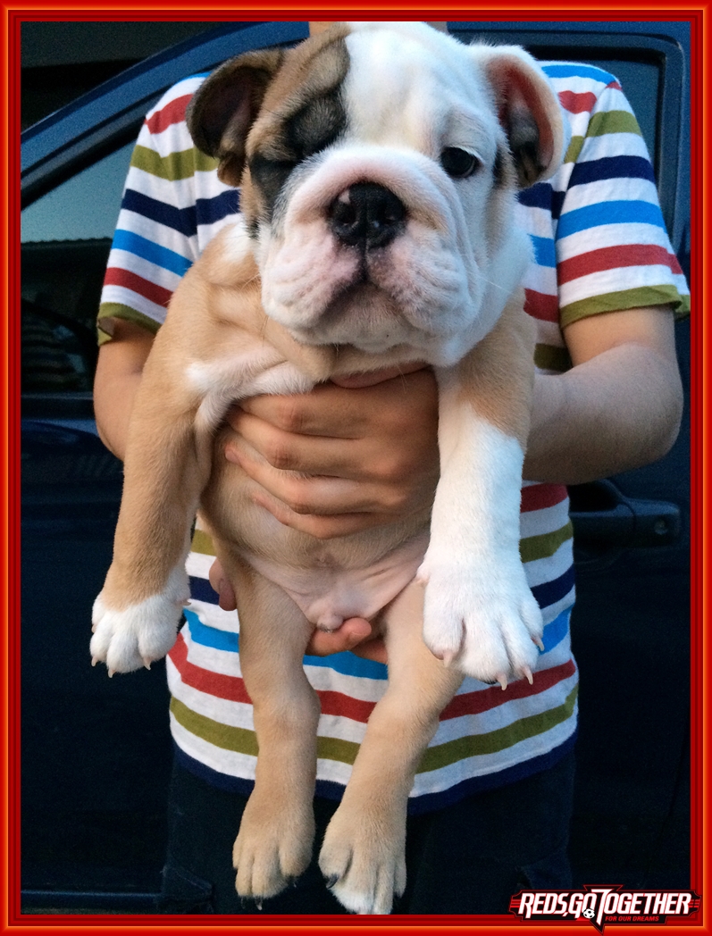 ลูกสุนัขเป็นลูกของ กันดั้ม พ่อพันธุ์จากฟาร์ม THEBESTBULLDOGS พ่อพันธุ์รูปสุดท้ายค่ะ