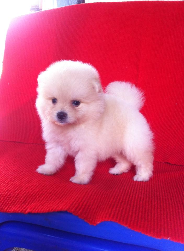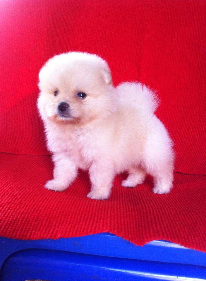 ขายลูกปอมหน้าหมีตัวผู้สีขาวครืม 2 ตัวครับลูกหมาที่บ้านเลิ้ยงเองครับ