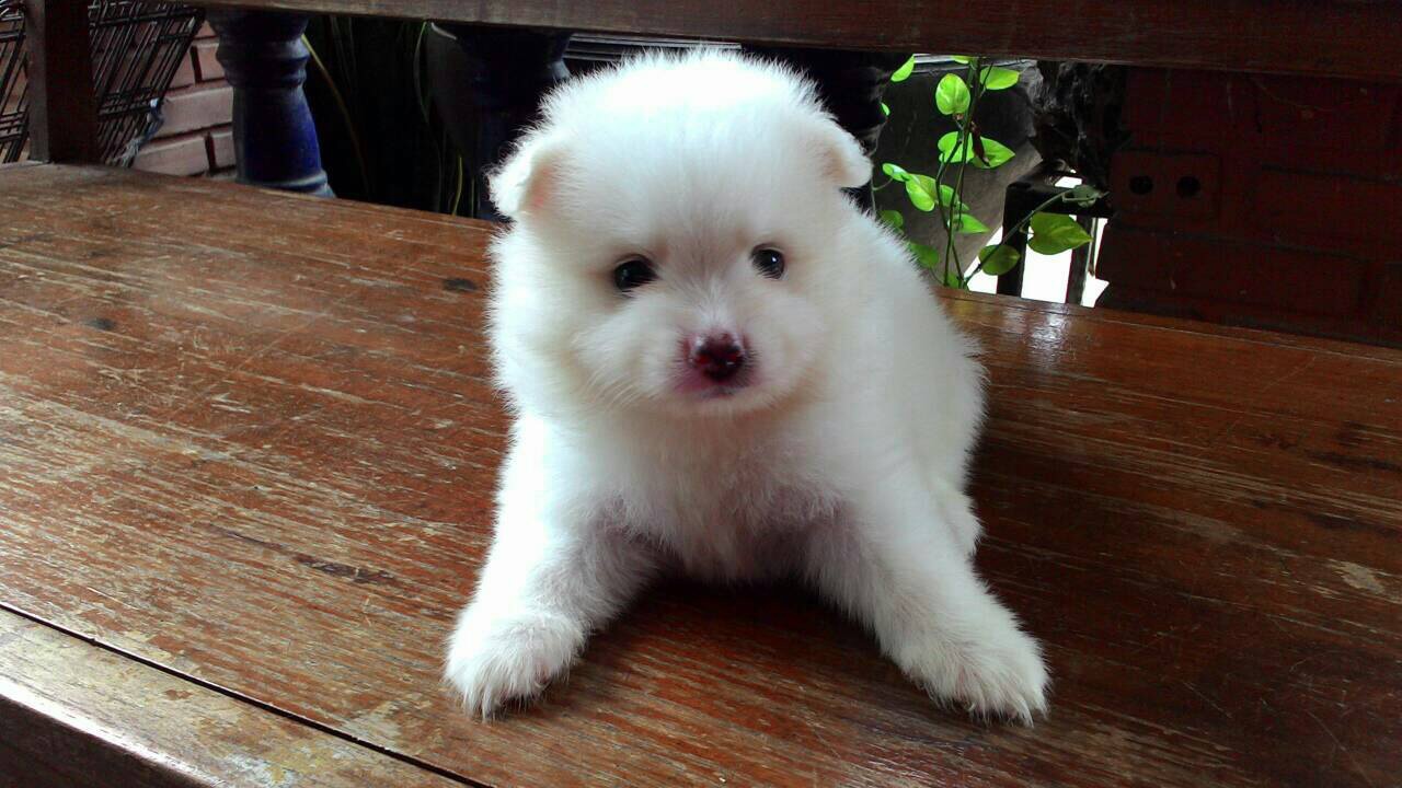 น้องปอมสีขาวเพศผู้ วัคซีน+ถ่ายพยาธิ สนใจสอบถาม0931240112
