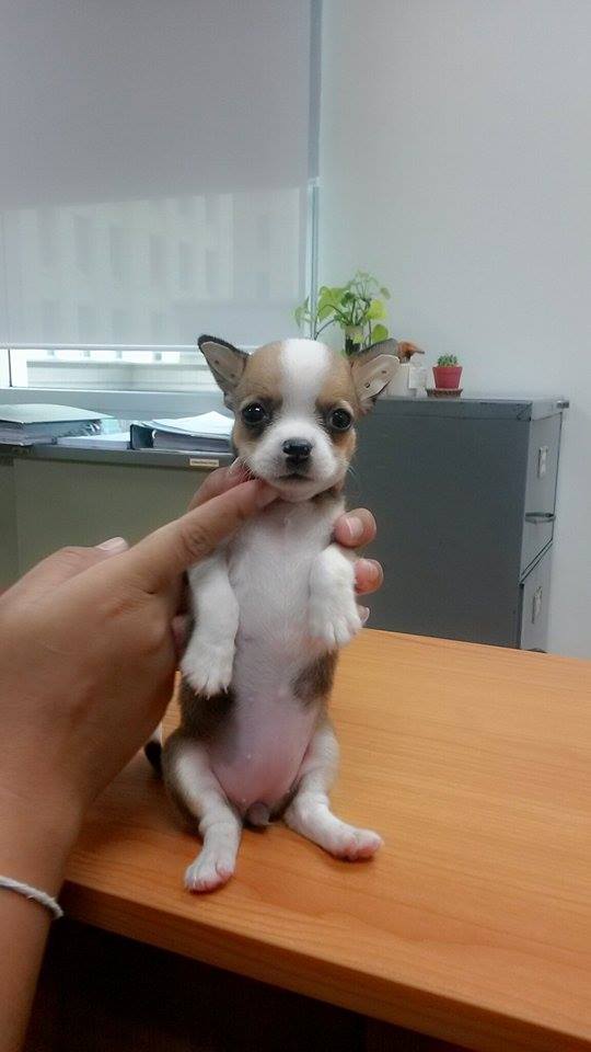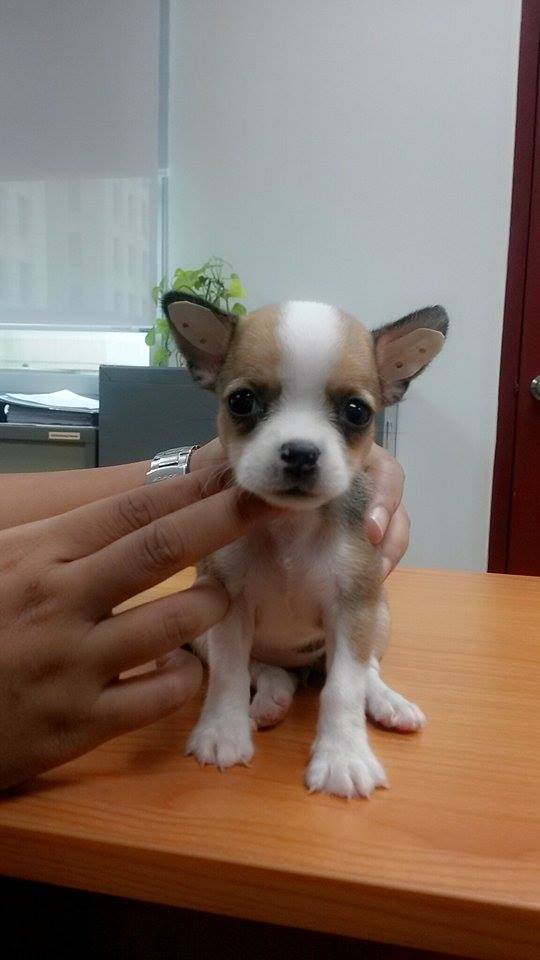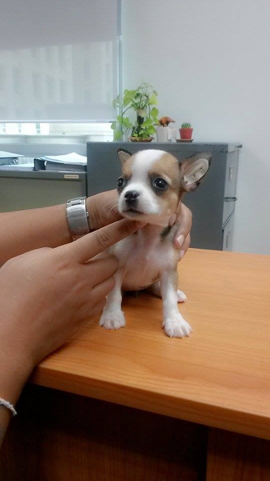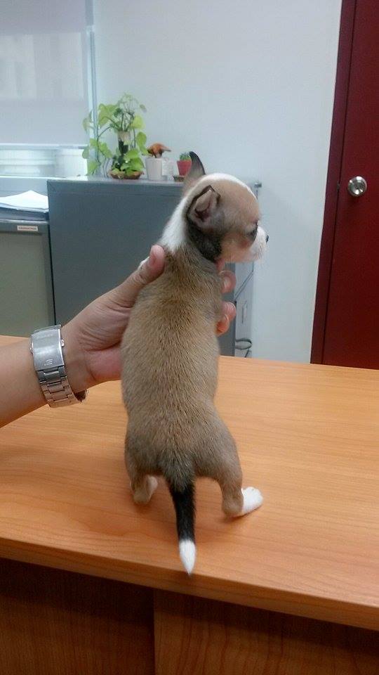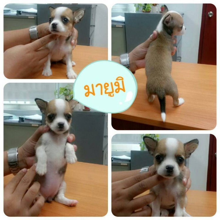 ลดราคาสาวน้อย "มายูริ"ชิวาวาขนสั้นเพศเมีย สีขาวน้ำตาล ไซส์เล็ก หน้ากวนๆ ราคา 5300