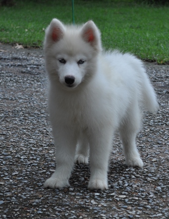 น้องหมาไซบีเรียน วู๊ดลี่ เพศเมีย สีขาวล้วน ตาฟ้าคู่ น่าตาน่ารัก โครงสร้างใหญ๋ ขนหนา เท้าใหญ่ วัคซีนให้ จัดส่งฟรี สนใจติดต่อคุณตุ่น 0856266759 line id katoon88nenenana