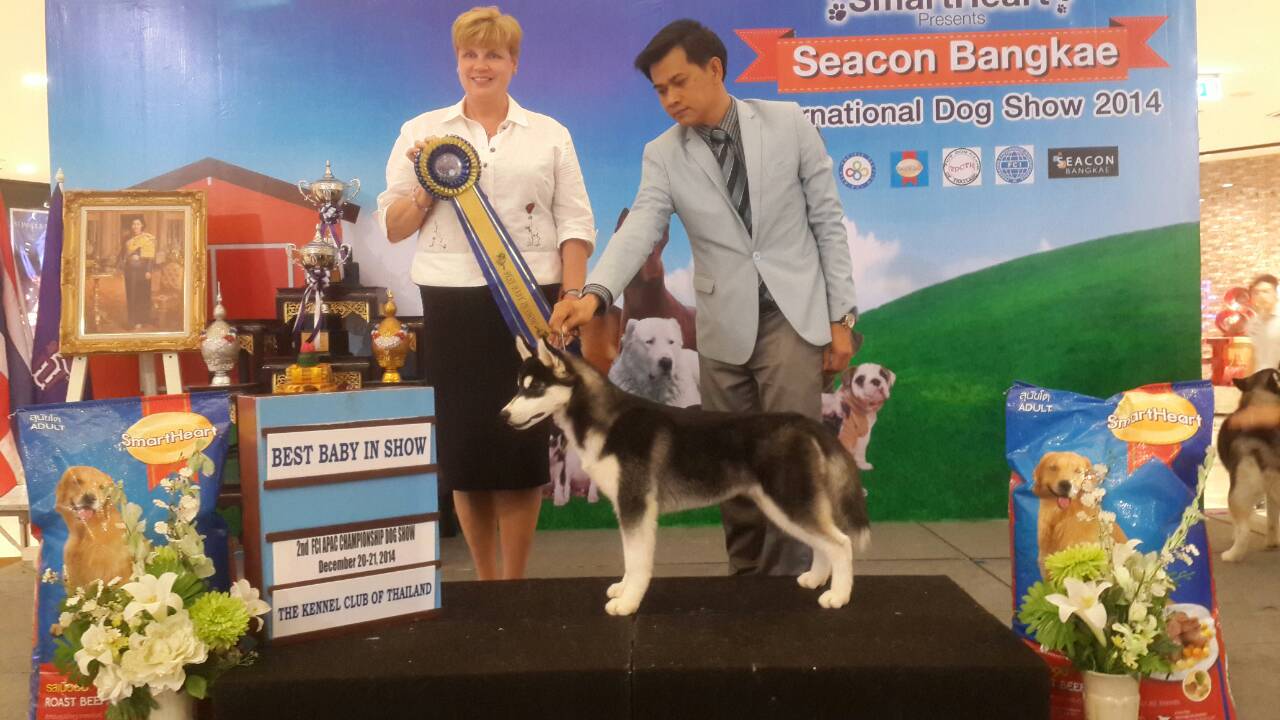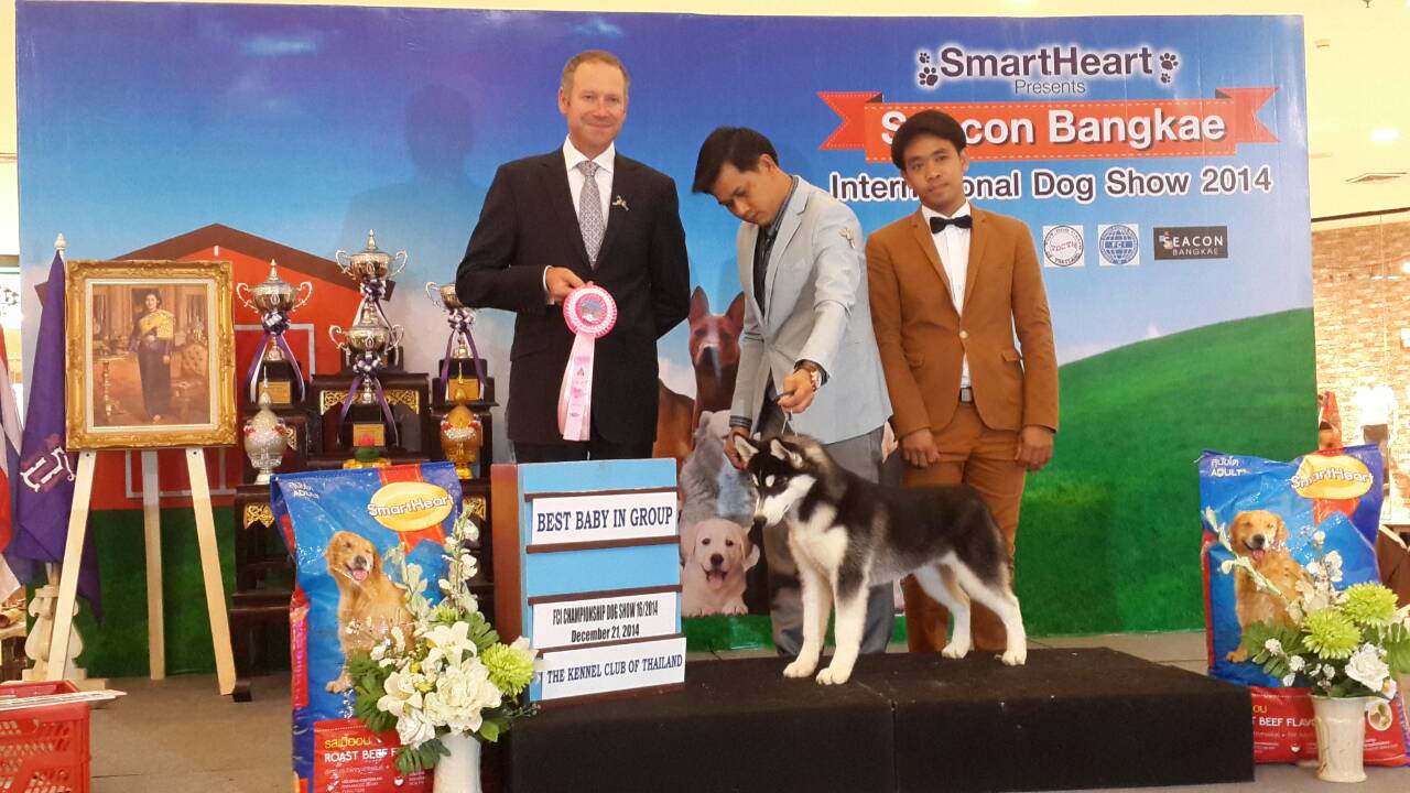 [b]พ่อของ Dragon เป็นพ่อพันธุ์นำเข้าจากคอก Siberianlady ของอเมริกา Srb.Ch.Th.Ch.Shadetree's Hollywood Cowboy (Hoot)