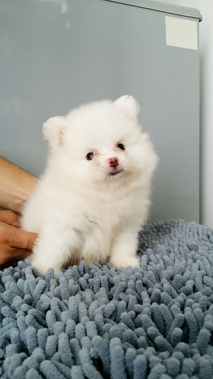 ขายน้องปอม #รับวันนี้ราคาพิเศษค่ะ เพศชายสีขาวล้วน(กล้องมันไม่ค่อยดี เลยออกครีมๆนะคะ ) สายแท้