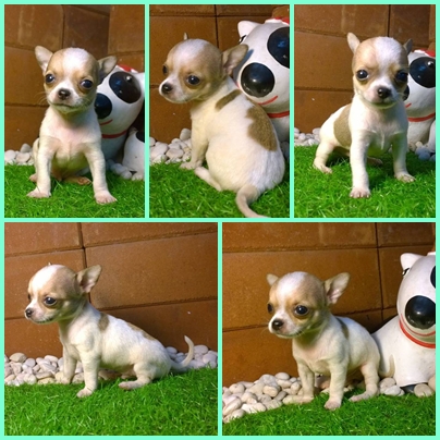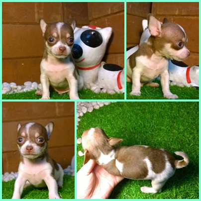 รูปที่ 2 ชิวาวา ขนสั้น เพศผู้ สีขาวน้ำตาล หัวเหม่งๆ ตัวเล็ก ๆจิ๋วๆ