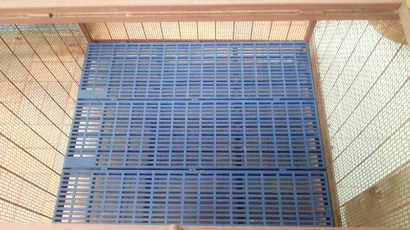 พื้นกรงเป็นสแลทพลาสติกมีรูระบายของเสีย