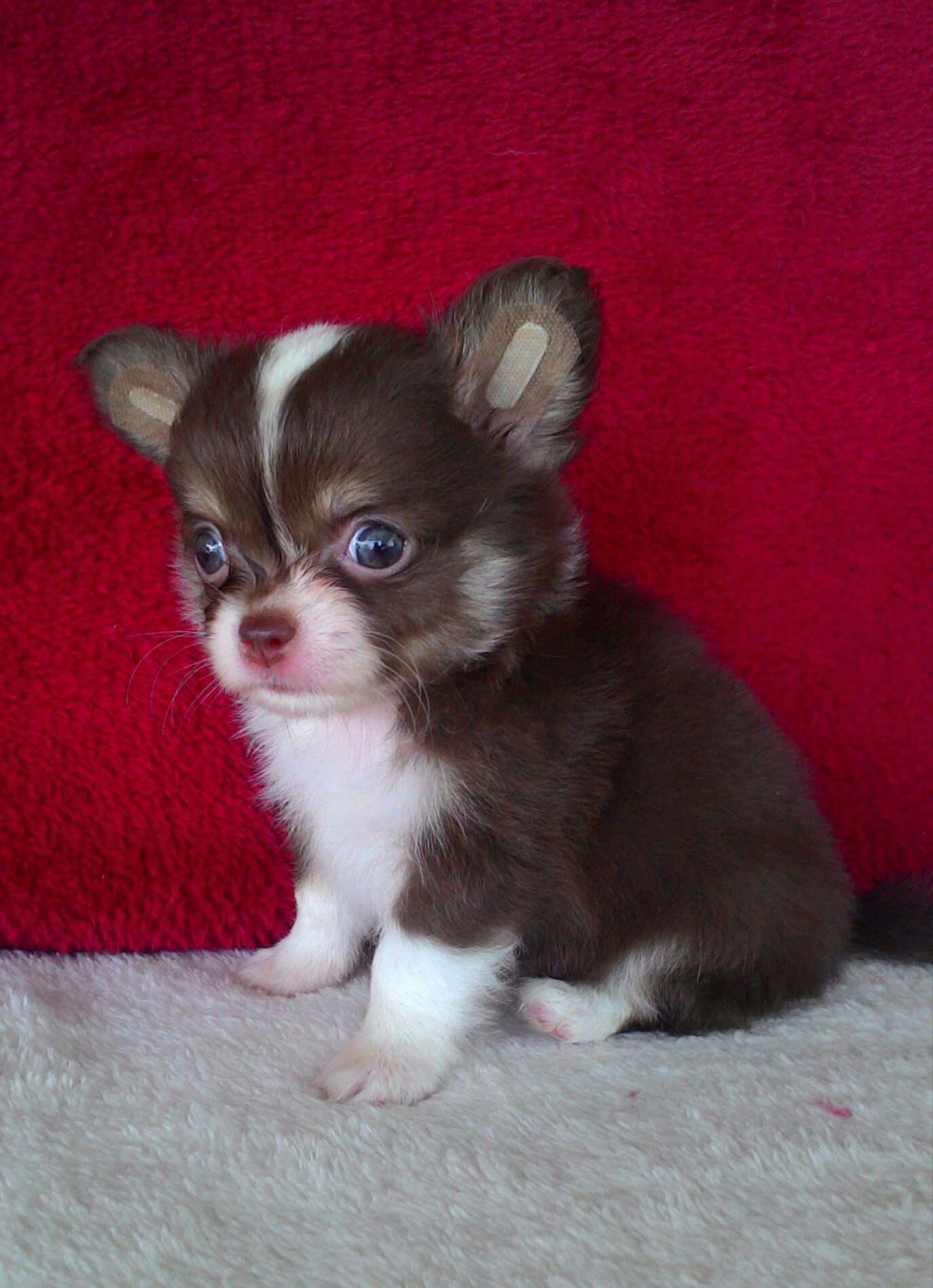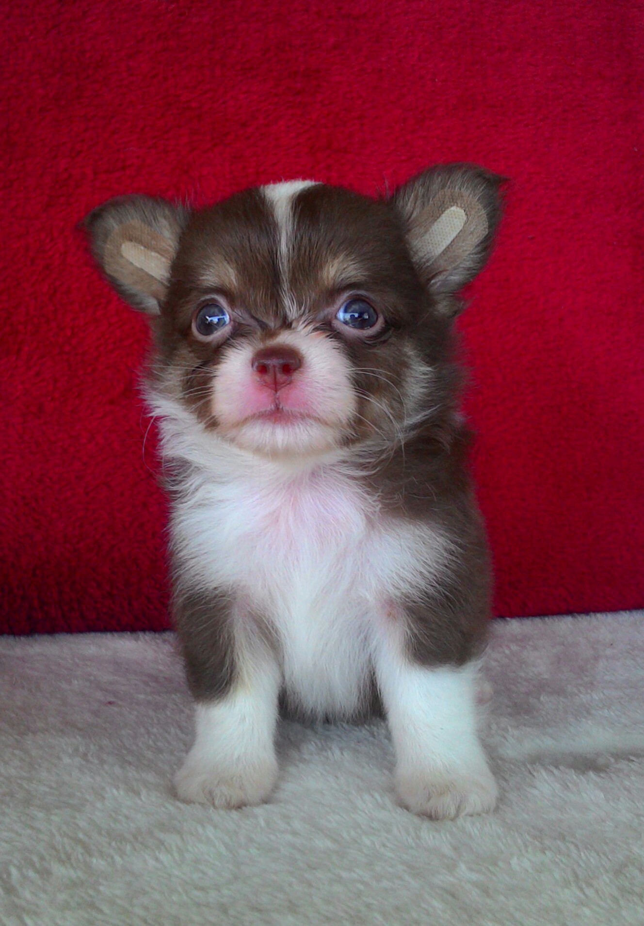 ขายลูกชิวาวาขนยาว เพศผู้ สีช็อค หน้าสั้น ไซด์เล็ก มีใบเพด