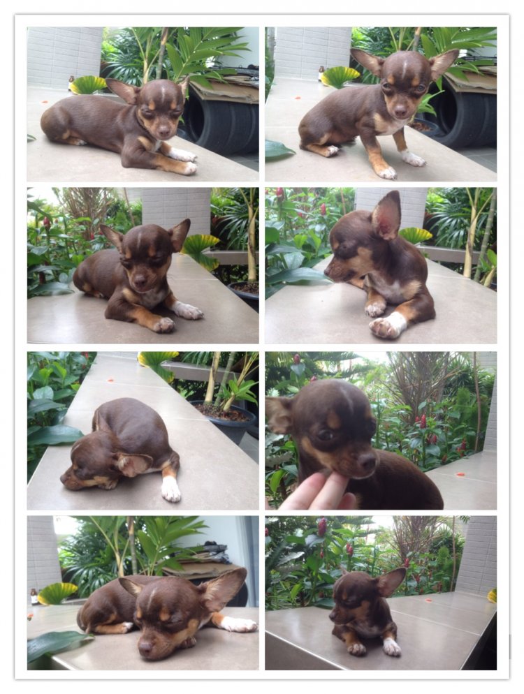 ขายลูกสุนัขชิวาวา ขนสองชั้น เป็นสุนัขบ้านแท้ ตัวเมีย สีช้อค ราคาไม่แพง อายุ2 เดือน ฉีดวัคซีน ถ่ายพยา