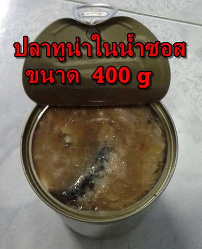 นอกจากนี้ยังมีอาหารแมวปลาทูน่าน้ำซอส ขนาด 400g ราคา 25 บาท และขนาด 85g จำหน่ายราคา 13 บาท