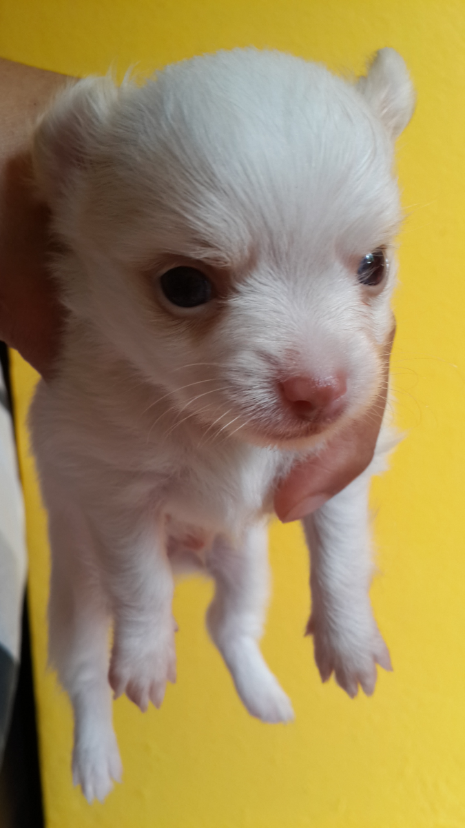ชิวาว่าขนยาว ตัวเล็ก หัวสวย สีขาว ผู้ชาย 2 ครับ
